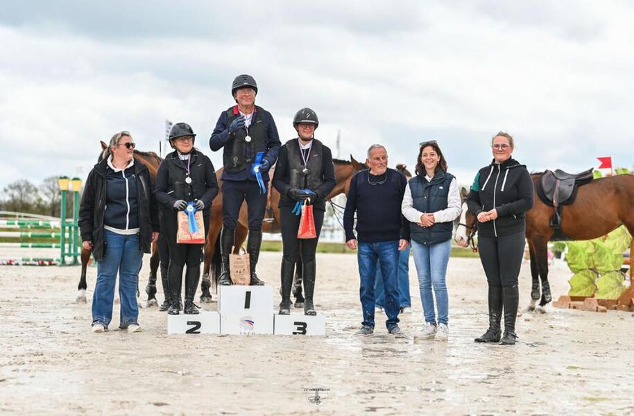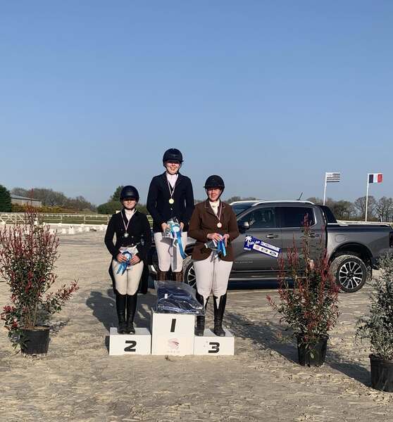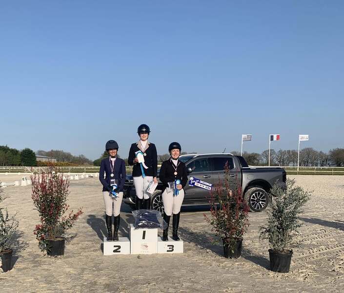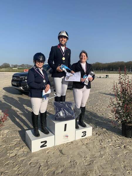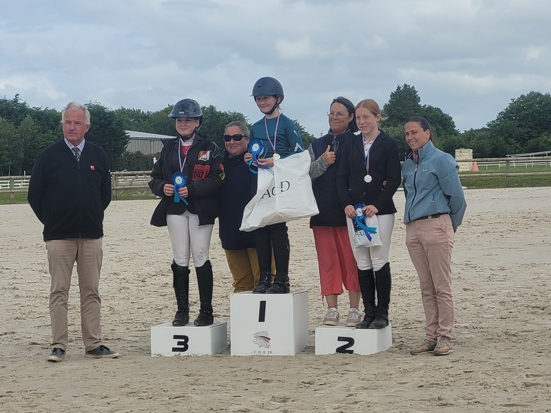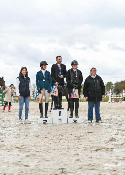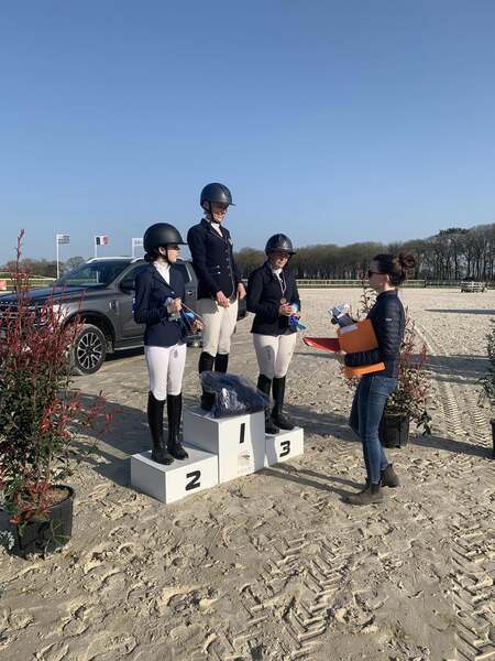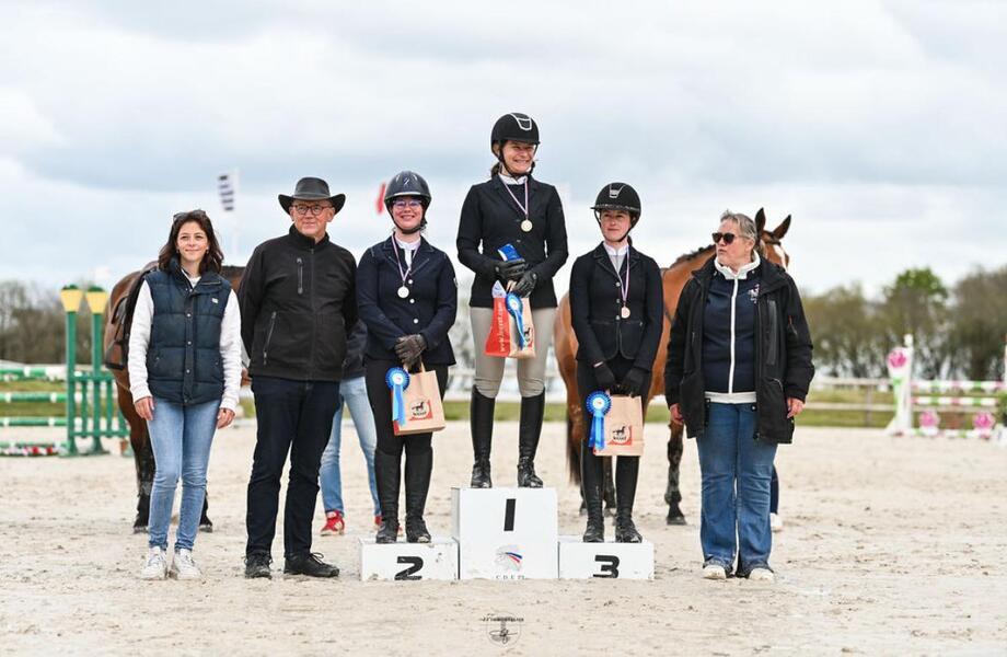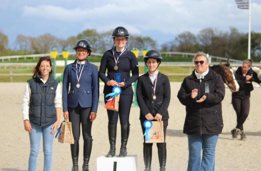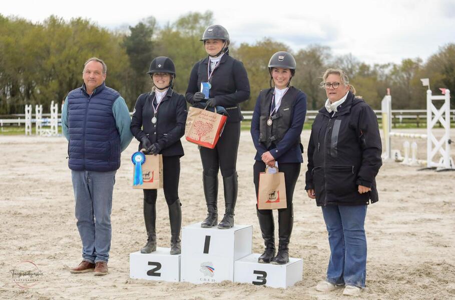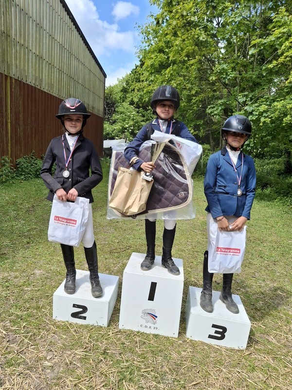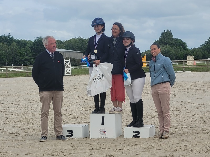 1- Or- Olympe Gros et Vavit du Bois, Brest Equitation Argent : Clotilde Sahun et Printemps des déportés, Ecuries de Cornouaille Bronze : Adélaïde Vauvrecy et Haribo de Keresseis, Brest Equitation