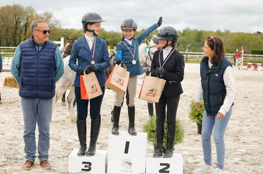 Poney 3 : OR : Ivana Perez/Fulenn de Kerline, Breizh Poon's ARGENT : Léontine Le Grand Moreau/Cuba de Rumengol, FE Cheval Loisirs BRONZE : Ninon Dupaty/Etoile de Kerduff, FE cheval Loisirs